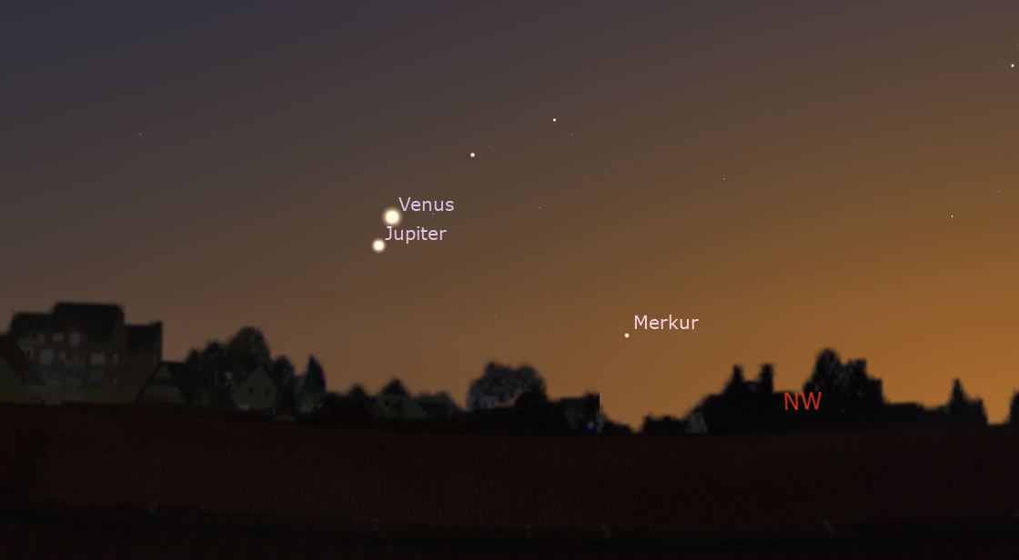 die Planeten Merkur, Venus und Saturn tatsächlich sehr nahe zusammen. Jedoch ist der Himmel dann noch extrem