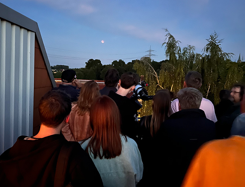 Teleskopen konnte man den ebenfalls sichtbaren Mond inklusive seiner Krater genauer betrachten.