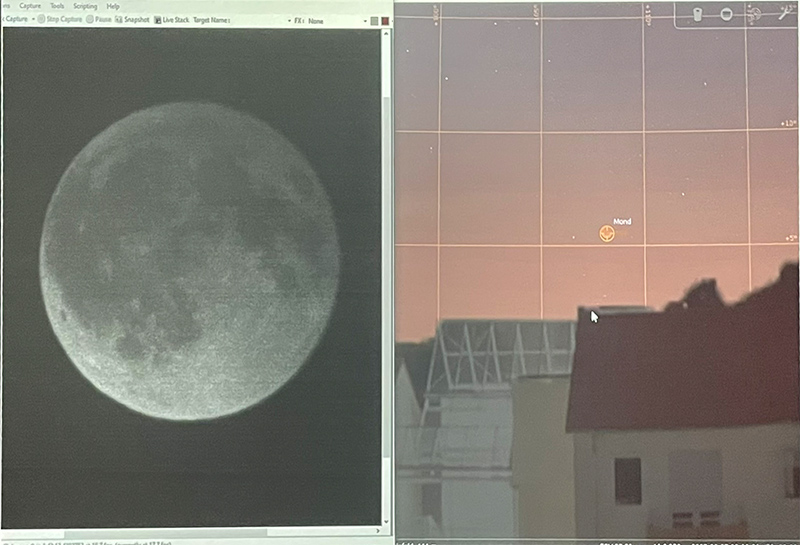 kleiner Runde in der Sternwarte zu einer kurzfristigen gemeinsamen Beobachtung getroffen. Das Bild links zeigt die