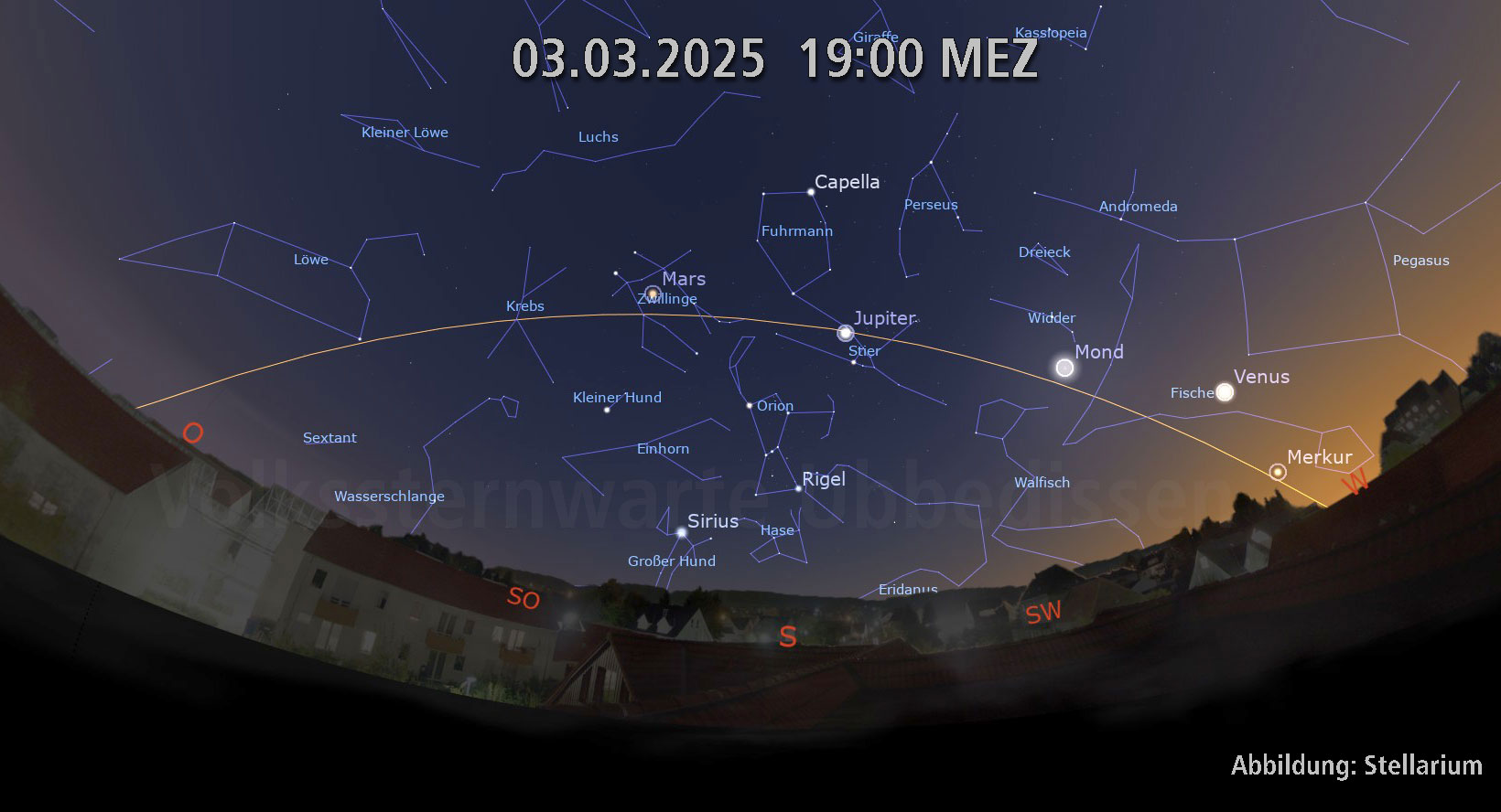 allerdings der Saturn nicht mehr zu sehen. Am 03.03. (siehe Abbildung unten) ist sogar der Mond mit dabei.