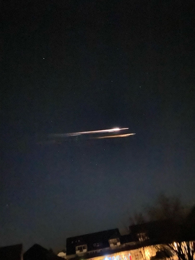 gegen 04:45 Uhr draußen war, konnte etwas sehr besonderes am Himmel beobachten: Trümmerteile