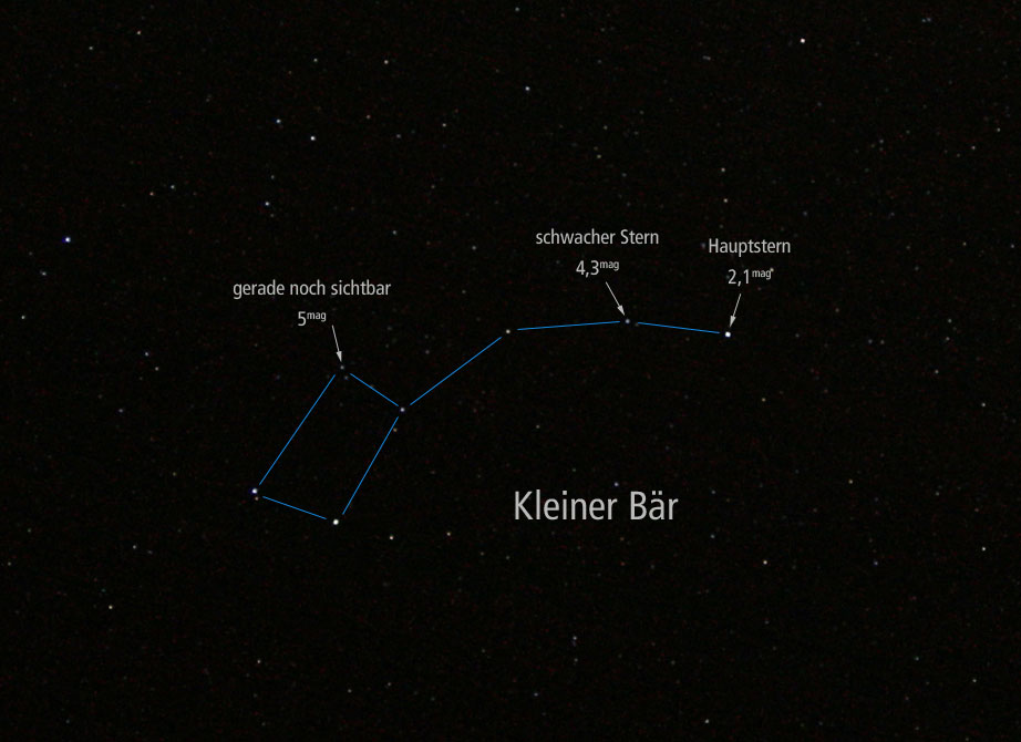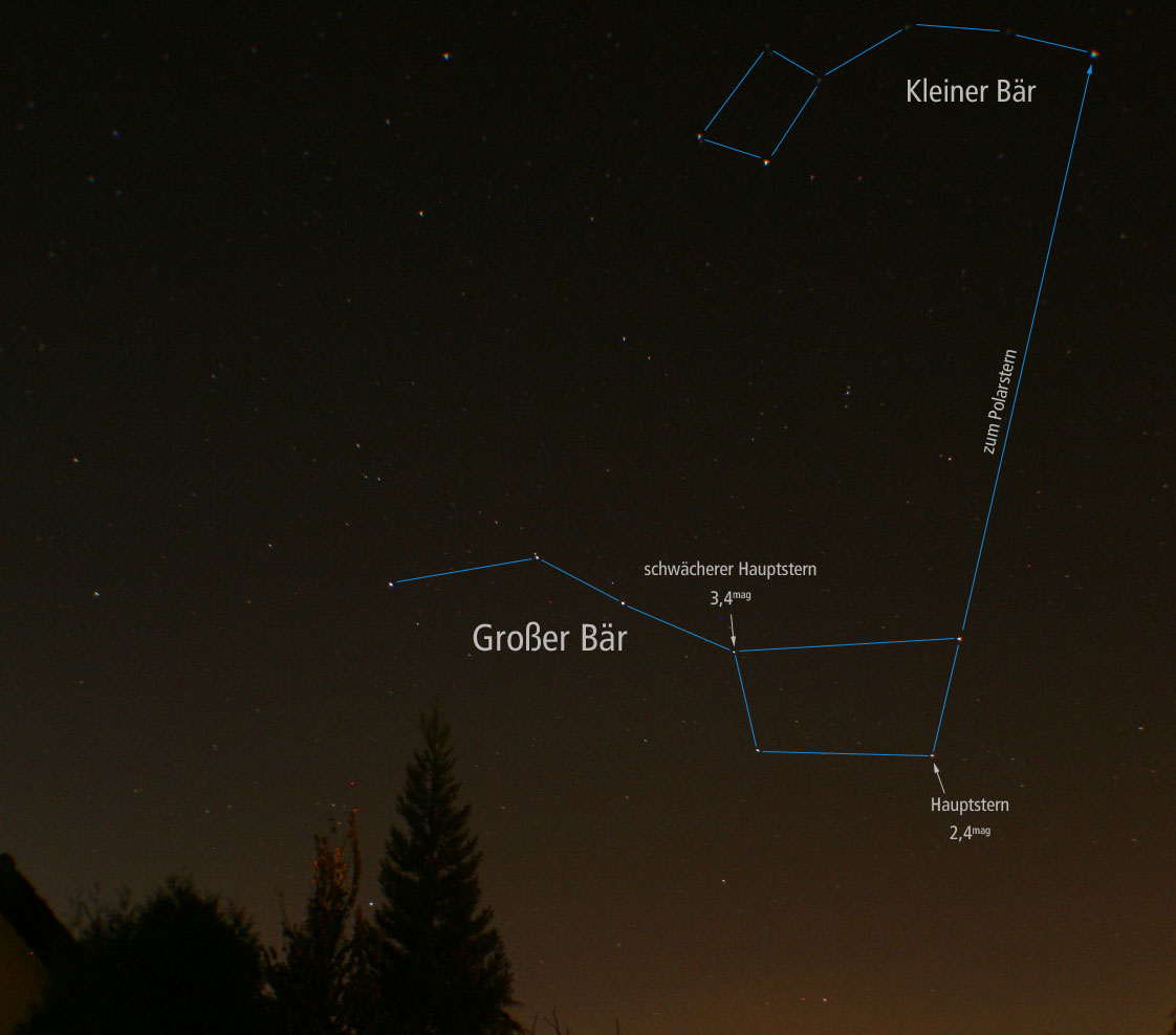 Etwas lichtschwächere Sterne sind gut im kleinen Wagen zu erkennen, wie